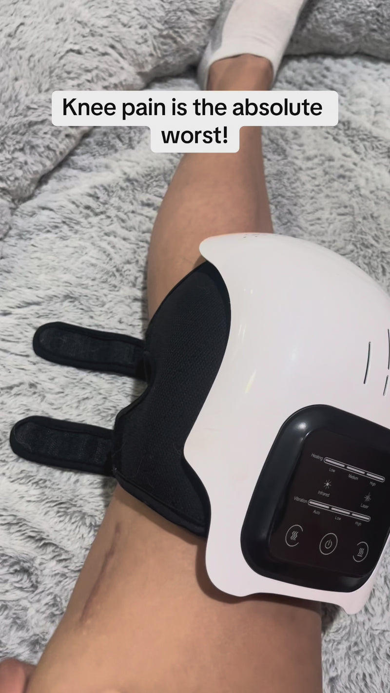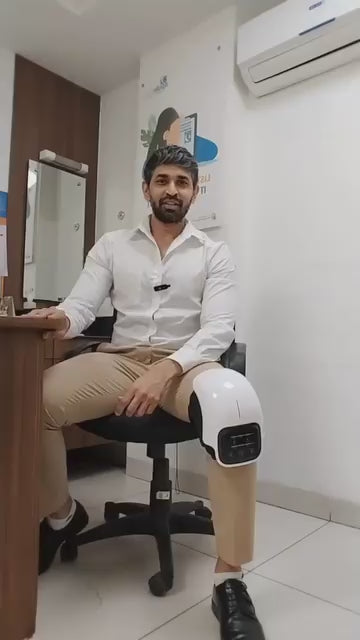 The massager uses heat therapy and vibration massage to improve blood circulation, reduce stiffness, and relieve knee pain caused by arthritis, injuries, or daily strain.